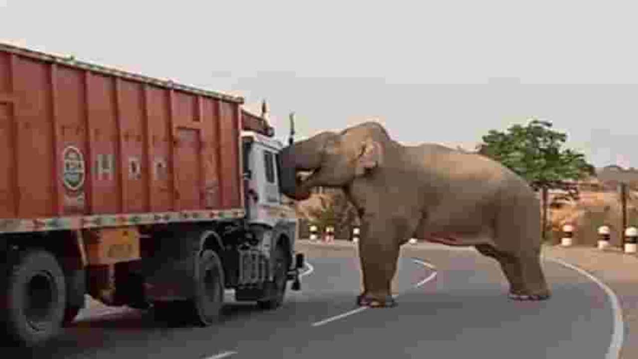 VIDEO | भररस्त्यात ‘गजराज’चा पारा चढला, ट्रकवर डोके आदळले, पुढे काय झाले ते पाहून तुम्हीही स्तब्ध व्हाल