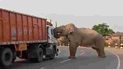 हा व्हिडिओ पाहिल्यानंतर तुम्हीही क्षणभर स्तब्ध झाला असाल. ट्विटरवर हा व्हिडिओ भारतीय वनसेवेचे अधिकारी सुशांत नंदा यांनी शेअर केला आहे. आता हा व्हिडिओ मोठ्या प्रमाणात व्हायरल होत आहे. बातमी लिहिण्यापर्यंत सुमारे 10 हजारहून अधिक लोकांनी हा व्हिडिओ पाहिला आहे. या व्हिडिओवर सोशल मीडियात विविध प्रतिक्रियाही नोंदवल्या जात आहेत. लोकांच्या प्रतिक्रिया वाचल्यावर तुम्हाला तुमच्या मनातीलच भावना व्यक्त झाल्यासारखे वाटेल. हा व्हिडीओ पाहून स्तब्ध व्हाल, पण तितकीच मज्जाही लुटाल, यात शंका नाही. (The elephant gets angry, hits the head on the truck, you will be stunned to see what happens next)