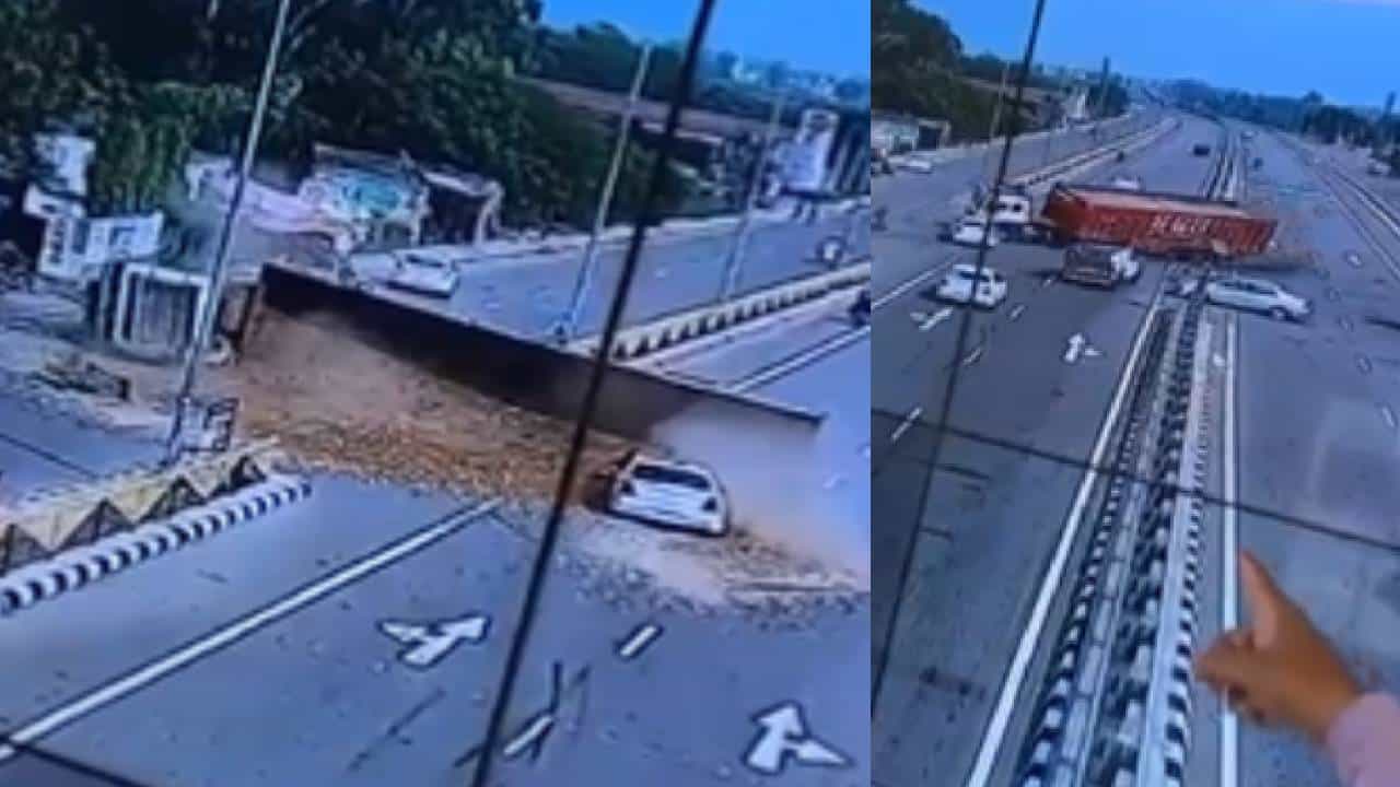 या अपघाताच्या सीसीटीव्ही फुटेजमध्ये एक ट्रेलर अचानक भरधाव वेगाने रस्त्याच्या दुसऱ्या बाजूला वळताना दिसत आहे. त्याचवेळी समोरून येणाऱ्या दोन गाड्यांची त्याला धडक बसली. यानंतर ट्रॉली उलटते.