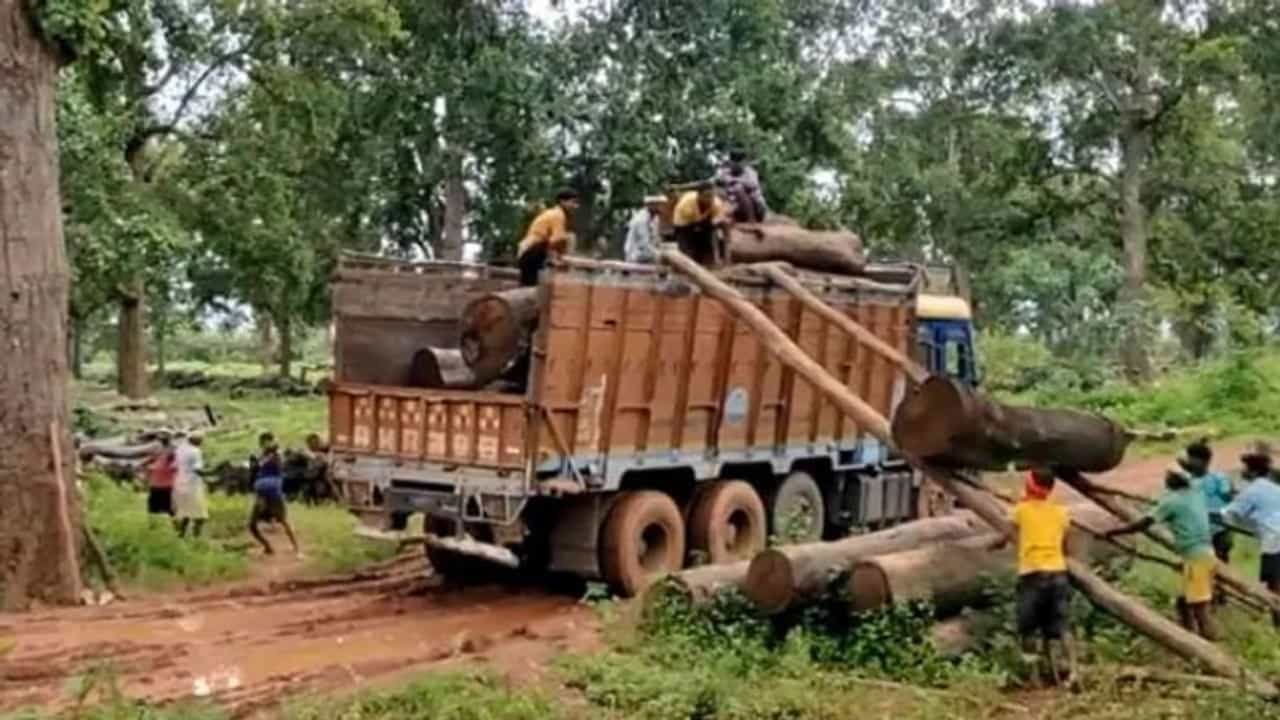 शेकडो किलोचे ओंडके ट्रकवर चढवण्यासाठी मजुरांची ‘आयडियाची कल्पना’, टीमवर्क पाहून नेटकरीही आवाक