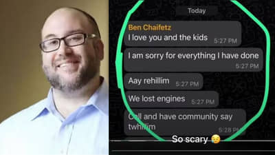 चुकी बद्दल मला दिलगीरी व्यक्त करतो, ये रेहल्लीम आमचे इंजिन बिघडले आहे. ये रेहल्लीम, सर्वांना बोलवा आणि सामुदायिक तेहिलीम करा ” असा संदेश त्याने पाठवला असून तो व्हायरल होत आहे. “I love you and the kids. I am sorry for everything I have done. Aay rehillim. We lost engines. तेहल्लिम ही ज्यू लोकांची हिब्रु धार्मिक पुस्तकातील एक परंपरा आहे.