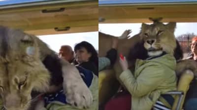 काही लोक जंगल सफारीचा आनंद लुटण्यासाठी पर्यटकांसाठीच्या गाडीतून जंगल सफारीला गेले होते.याचवेळी अचानक एक सिंह त्यांच्या समोर येतो. तो त्यांच्या गाडीत शिरतो. सिंहाला पाहून गाडीतील लोक घाबरतात. पण त्यानंतर जे घडतं ते त्यावर तुम्हाला विश्वास बसणार नाही. पुढे हा सिंह आक्रमकपणे आपल्यावर हल्ला करेल असं या गाडीतल्या लोकांना वाटतं. पण इतक्यात तो सिंह अगदी अनपेक्षित वागतो. तो गाडीत बसलेल्या व्यक्तीला कुरवाळतो. त्याला जवळ घेतो. मग गाडीतली एक महिलाही या सिंहाच्या आयाळावरून हात फिरवते. हा असा आश्चर्याला सुखद धक्का देणारा व्हीडिओ सध्या व्हायरल होत आहे.