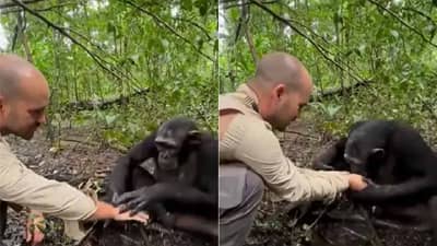 मुंबई : तुम्ही सोशल मीडियावर समजा सक्रीय असाल, तर तुम्ही अनेक प्राण्यांचे व्हिडीओ (Viral Video) पाहिले असतील. काही व्हिडीओ असे असतात की, ते लोकांचं मन जिंकतात. तर काही व्हिडीओ असे असतात जे पाहिल्यानंतर दु:ख होतं. सध्या एक असाच व्हिडीओ सोशल मीडियावर व्हायरल झाला आहे. तुम्ही चिंपांझी (Chimpanzee Video) नक्की पाहिला असेल, प्रत्यक्षात पाहिला नसेल तरी व्हिडीओत आणि चित्रात नक्की पाहिला असेल. जंगलात एक फोटोग्राफर फिरत आहे, त्यावेळी त्याच्या चिंपांझी मदत मागत आहे. ती मदत काय आहे हे तुम्ही व्हिडीओत पाहा. आनंद महिंद्रा (Anand Mahindra) ने वीडियो शेअर केला आहे.