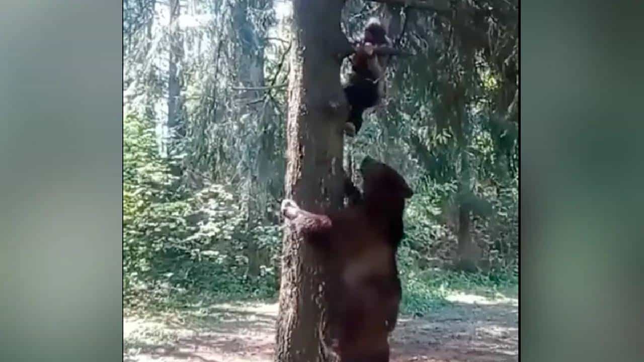 VIDEO | अस्वलापासून जीव वाचवण्यासाठी माणूस झाडावर चढू लागला, अस्वलही चढले आणि माणसाचे पाय ओढू लागले, मग…