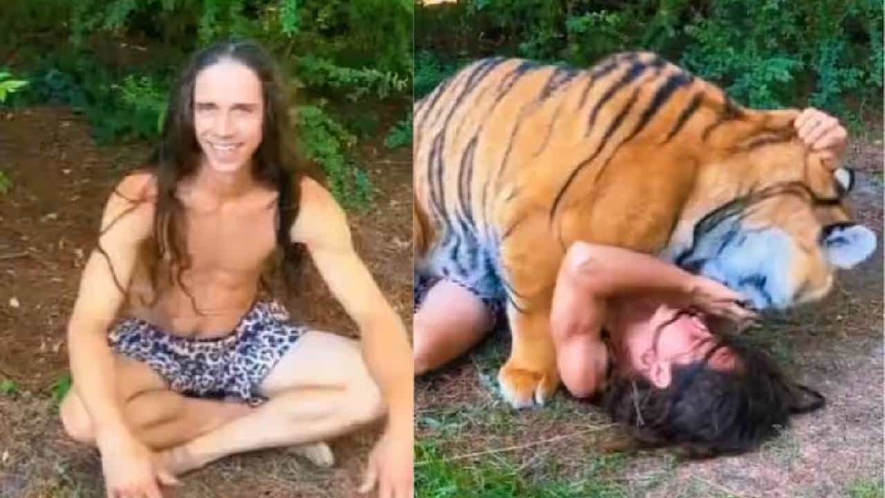 त्या व्हिडीओमध्ये तुम्हाला हे पाहायला मिळेल की, दोघे एकमेकांचे दोस्त आहेत. एक व्यक्ती त्या वाघाची मजा घेत आहे, त्याचबरोबर वाघ सुध्दा त्या व्यक्तीची मजा घेत आहे. त्यामुळे त्या वाघाने त्या व्यक्तीवरती जोरदार हल्ला केलेला नाही.