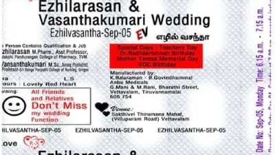 गोळ्यांच्या पत्त्याप्रमाणे दिसणार्या लग्न पत्रिकेत त्या व्यक्तीने स्वतःचे आणि होणाऱ्या पत्नीचे नाव लिहिले आहे. यासोबतच त्यांने लग्नाची तारीख, जेवणाची वेळ आणि लग्नाचे ठिकाणे असे सर्वकाही पत्रिकेत लिहिल्याचे दिसते आहे. त्या व्यक्तीने लग्नपत्रिका टॅबलेटच्या पत्त्यांच्या स्वरूपात बनवलीयं. ही खास लग्नपत्रिका सध्या सोशल मीडियावर मोठ्या प्रमाणात व्हायरल होत आहे. विशेष म्हणजे हे लग्न 5 सप्टेंबर आहे. या पत्रिकेमधील विशेष बाब म्हणजे पत्रिकेमध्ये मित्र आणि नातेवाईक यांना लग्नाला येण्याचे आमंत्रण देखील देण्यात आलायं.