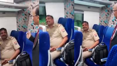 सोशल मिडीयावर वंदेभारत एक्सप्रेसचा एक व्हिडीओ व्हायरल होत आहे. त्यात एक पोलिसवाला वंदेभारतमध्ये बिनधास्त तिकीट नसताना प्रवास करताना दिसत आहे. या ट्रेनमध्ये टीसीने या पोलिसाला चांगलेच धारेवर धरल्याचे या व्हिडीओत दिसत आहे. या पोलिसाने माझी ट्रेन सुटल्याने आपण या ट्रेनमध्ये नाईलाजाने चढल्याचा बचाव करताना दिसत आहे. आपली एक चुक माफ करावी अशी विनवणी त्याने टीसीला केल्याचे दिसत आहे.