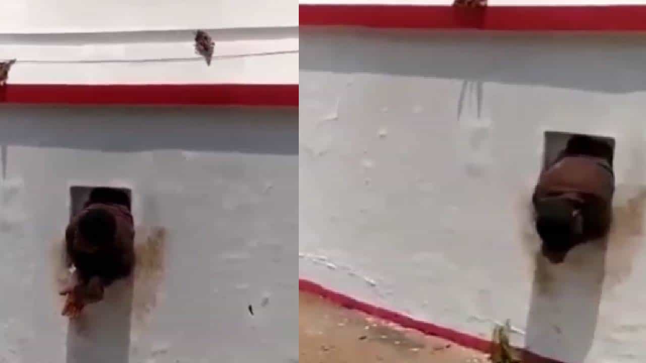 Video : मंदिरात चोरी करायला गेला आणि खिडकीत अडकला, नेटकरी म्हणतात, “जैसे कर्म तैसे फळ!”