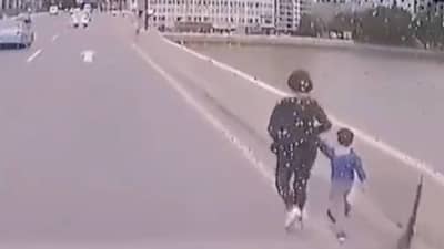 ही महिला पुलावरून नदीत उडी मारण्याच्या बेतात असताना बसचालकाने दरवाजा उघडून तिला तात्काळ पकडले.आपण पाहू शकता की ड्रायव्हर बस थांबवतो आणि पटकन दरवाजा उघडतो आणि महिला आणि मुलाला नदीत उडी मारण्यापासून वाचवतो.