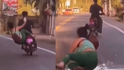 पुरुष ड्रायव्हरच्या मागे बसलेली महिला या दुसऱ्या दुचाकीवरच्या महिलेला लाथ मारताना दिसते. आरोपी महिला बाईकचा तोल बिघडवण्याचा प्रयत्न करत होती, मात्र असं करताना तिचा तोल गेला आणि ती टू-व्हीलरवरून खाली पडली.