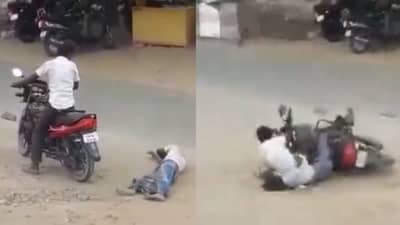ही क्लिप 53 सेकंदांची आहे. हा माणूस दुचाकीवर बसायला जाताच तो अडखळतो आणि जमिनीवर पडतो. मात्र, कसेबसे हात हलवत तो पुन्हा उभा राहतो आणि डगमगत्या पावलांनी मोटारसायकलच्या जवळ जातो.