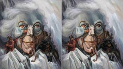 चित्राकडे नीट पाहिलं तर या ट्रेंडिंग चित्रात एक स्त्री, घोडेस्वार, घोडा किंवा सैनिक मागे उभे असलेलं दिसून येतंय. यापैकी तुम्ही कोणतं आधी पाहिलं ते सांगा.
