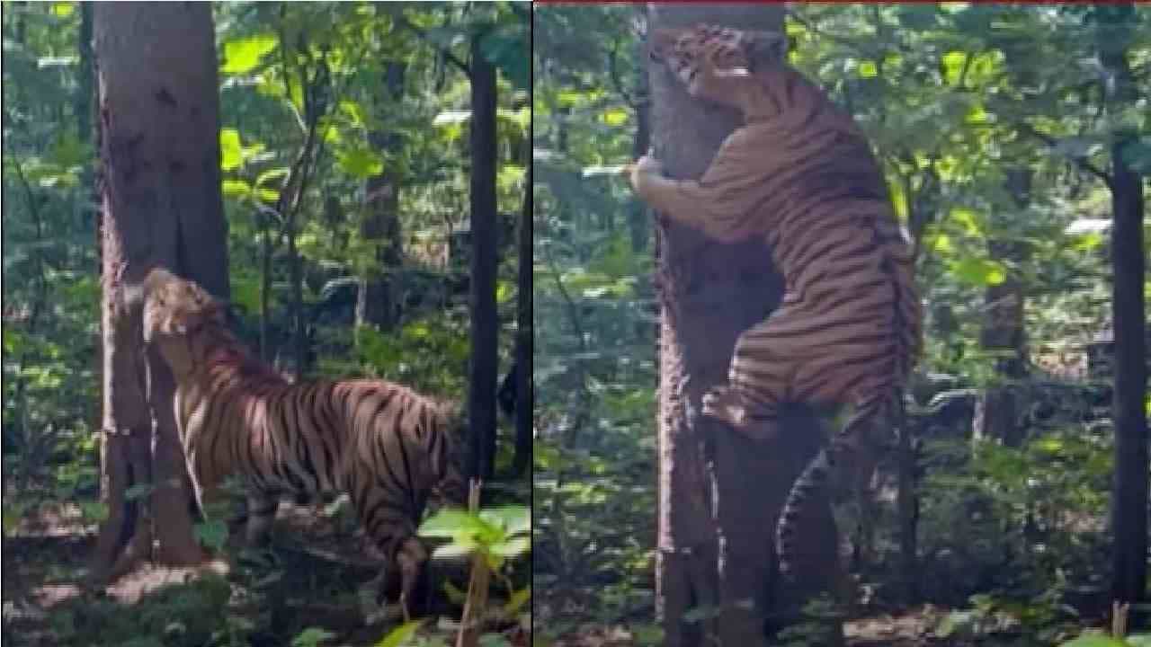 हा व्हिडिओ चार दिवसांपूर्वीचा असून पावसाळ्यात ओलसर त्वचेवर सुटणाऱ्या खाजेपासून दिलासा मिळावा म्हणून अनेकदा वाघ मोठ्या झाडांच्या सालीचा वापर करतात. मात्र व्हिडिओमध्ये दिसणारा हा वाघ त्वचेवरील खाज मिटवण्यासाठी चक्क झाडावर चढला आहे. व्हिडीओमध्ये हा वाघ झाडावर काही उंचीवर जाऊन आपल्या मानेजवळची त्वचा झाडाला घासत आहे. तसेच ओल्या त्वचेमुळे होणारा त्रास कमी करण्याचा प्रयत्न त्याच्याकडून सुरु असल्याचे दिसत आहे.
