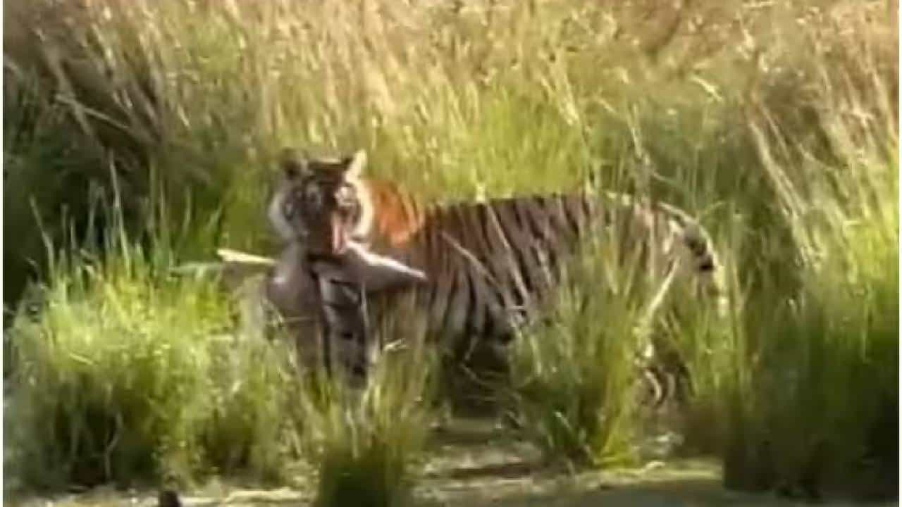 वाघाने केली हरणाची शिकार