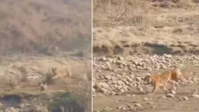 हा व्हिडीओ सोशल मीडियावर आईएफएस अधिकारी साकेत बडोला यांनी शेअर केला आहे. त्या व्हिडीओमध्ये मोठा वाघ दिसत आहे. तो वाघ हरणाचा पाठलाग करीत आहे. त्यावेळी तो हरणाच्या एकदम जवळ जातो. परंतु ज्यावेळी हल्ला करणार त्याचवेळी हरण आपल्या रस्त्यात बदल करतं वाघ जाग्यावर थांबतो.