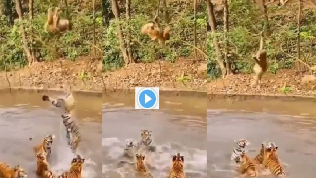 Video | माकड-वाघामध्ये जीवन मरणाचा खेळ, व्हिडीओमुळे सोशल मीडियावर धुमाकूळ, पाहा नेमकं काय घडतंय ?