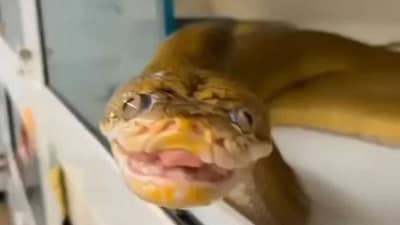 मुंबई : सोशल मीडियावर दररोज नवीन आणि कधीकधी अत्यंत विचित्र गोष्टी पाहायला मिळतात. अशा गोष्टी ज्याबाबत आपण कधी स्वप्नातही विचार केला नसेल. इंटरनेटवर मजेशीर व्हिडीओ आढळतात, जे लोकांना पुन्हा पुन्हा पहायला आवडतात. साप हा असा प्राणी आहे ज्याला पाहिल्यावर भले भले घाबरतात. पण, सध्या सापाचा एक असा व्हिडीओ व्हायरल झाला आहे जे पाहून तुम्हाला अश्चर्याचा धक्का बसल्याशिवाय राहणार नाही. या व्हिडीओमध्ये एक साप हसत हसत अप्रतिम एक्सप्रेशन देताना दिसत आहे. हा व्हिडीओ नेटकरींच्या खूप पसंतीस पडत आहे आणि वापरकर्ते या व्हिडीओचा आनंद घेत मजेदार प्रतिक्रिया देखील देत आहेत.