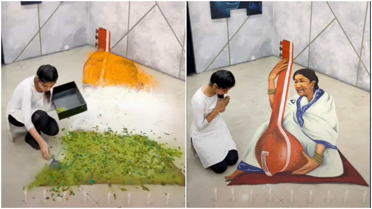 Tribute to Lata Mangeshkar : रांगोळीतून लता मंगेशकर यांना श्रद्धांजली, 39 मिलियनहून अधिकवेळा पाहिला गेला ‘हा’ Video