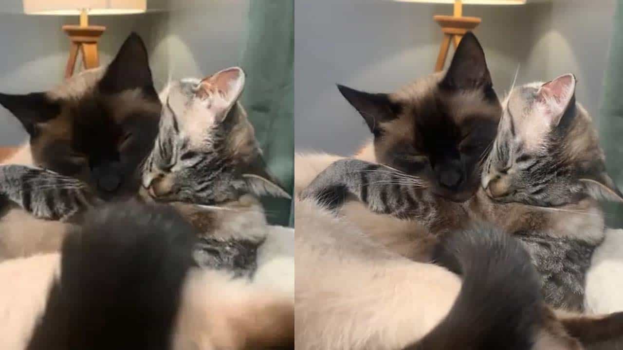 मुंबई : तुम्ही अनेक लोकांना एकमेकांना मिठी मारताना अनेक वेळा पाहिले असेल, पण तुम्ही कधी प्राण्यांना मिठी मारताना पाहिले आहे का? कदाचित नसेल.. आता एक व्हिडीओ सोशल मीडियावर मोठ्या प्रमाणात व्हायरल होत आहे, ज्यामध्ये 2 मांजरी एकमेकांना मिठी मारताना दिसत आहेत. आम्ही तुम्हाला सांगू की ज्याप्रमाणे मनुष्यांमध्ये भावना असतात, त्याचप्रमाणे प्राण्यांमध्येही खूप भावना असतात. ते एकमेकांवरील प्रेम वेगवेगळ्या प्रकारे व्यक्त करतात. व्हायरल होत असलेल्या क्लिपमध्ये पफिन आणि बिनक्स नावाच्या दोन अतिशय गोंडस मांजरी एकमेकांना मिठी मारताना दाखवल्या आहेत.