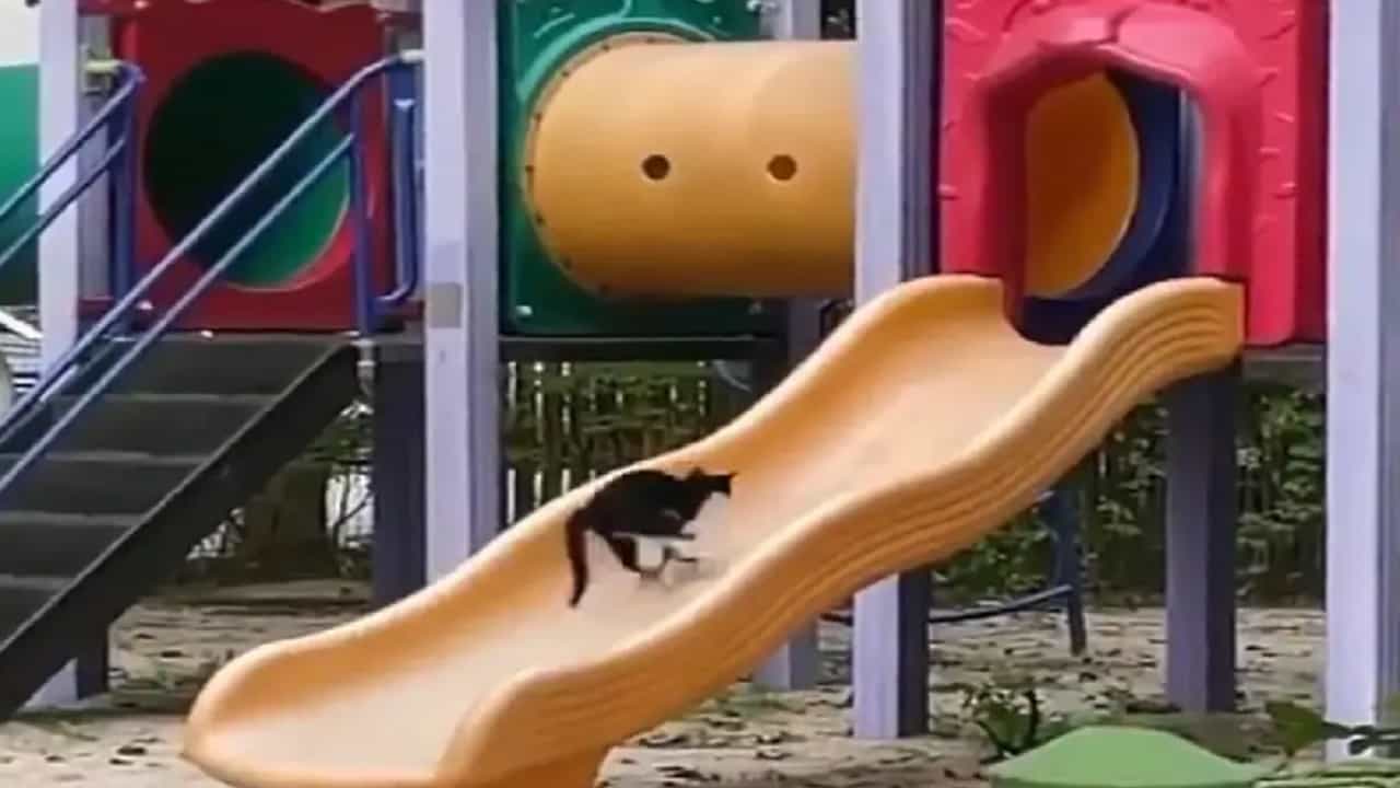 मांजरीचा घसरगुंडी खेळतानाचा व्हिडीओ व्हायरल