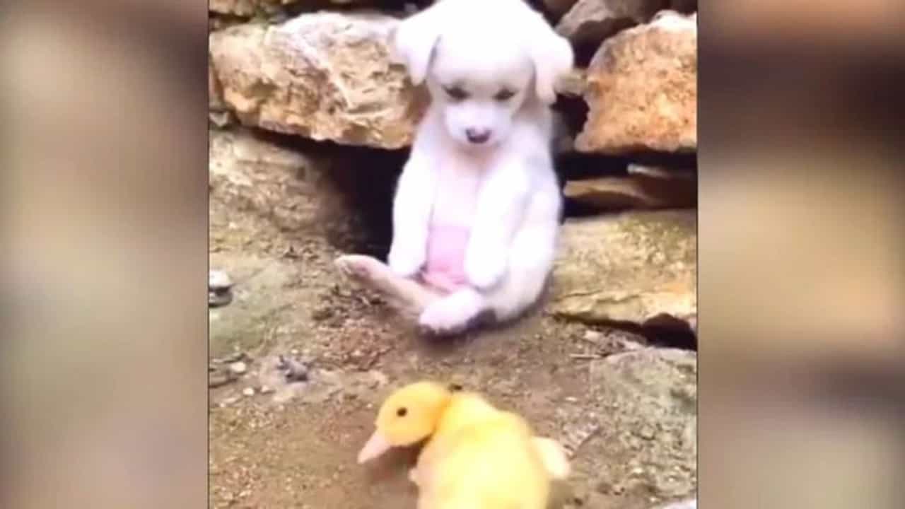 बदकाच्या पिलाच्या मदतीला जेव्हा छोटासा कुत्रा येतो, नेटकरी म्हणाले, ‘माणसं हे कधी शिकणार?’