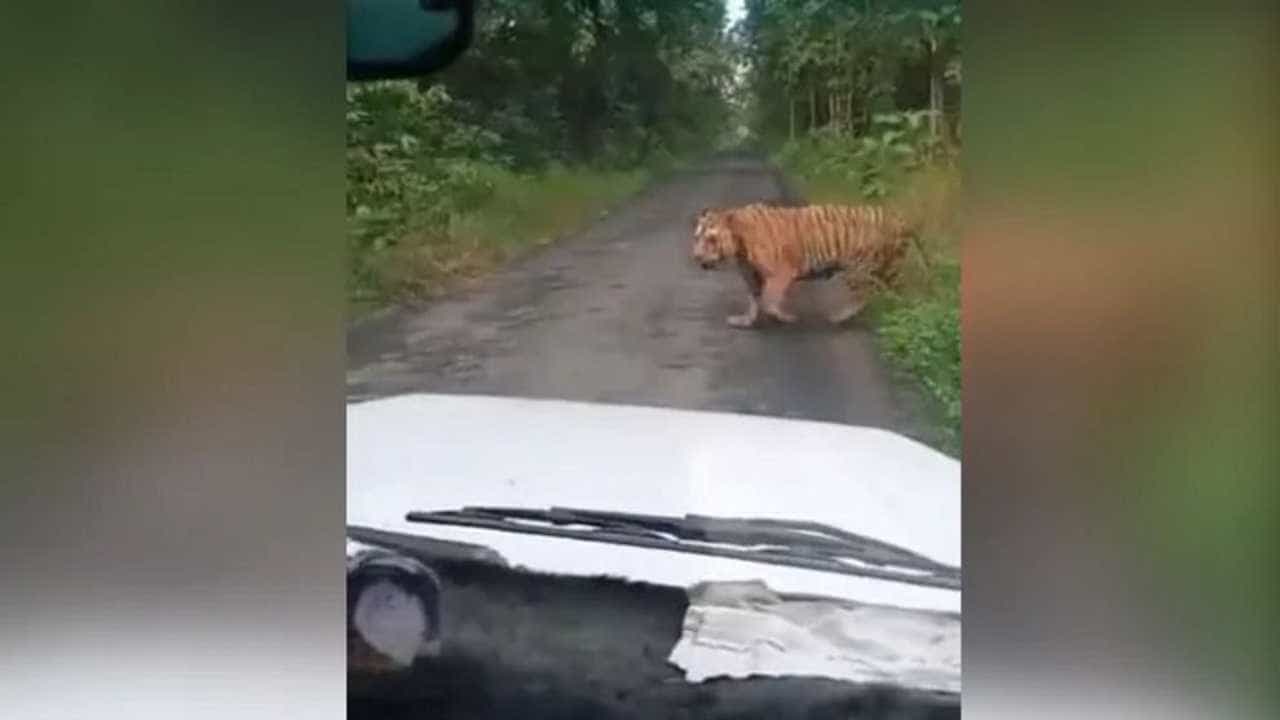 व्हिडिओमध्ये वाघ रस्ता ओलांडताना दिसतो. तो हळू हळू एका बाजूने दुसऱ्या बाजूला जात आहे. त्याला समोर माणूस आहे की अजून कोण, याच्याशी काहीही देणंघेणं नाही. तो जंगलाचा राजाच आहे, हे इथं दाखवून देत आहे. या दरम्यान, रस्त्यावर एक कार देखील उभी आहे, ज्यात काही लोक बसलेले आहेत आणि ते वाघाचा व्हिडिओ शूट करत आहेत. व्हिडीओमधील एक मनोरंजक गोष्ट म्हणजे वाघ गाडी आणि त्या लोकांकडे चांगले दुर्लक्ष करतो आणि जंगलाच्या दिशेने जातो. हा व्हिडिओ सोशल मीडियावर आतापर्यंत 17 हजार वेळा पाहिला गेला आहे.
