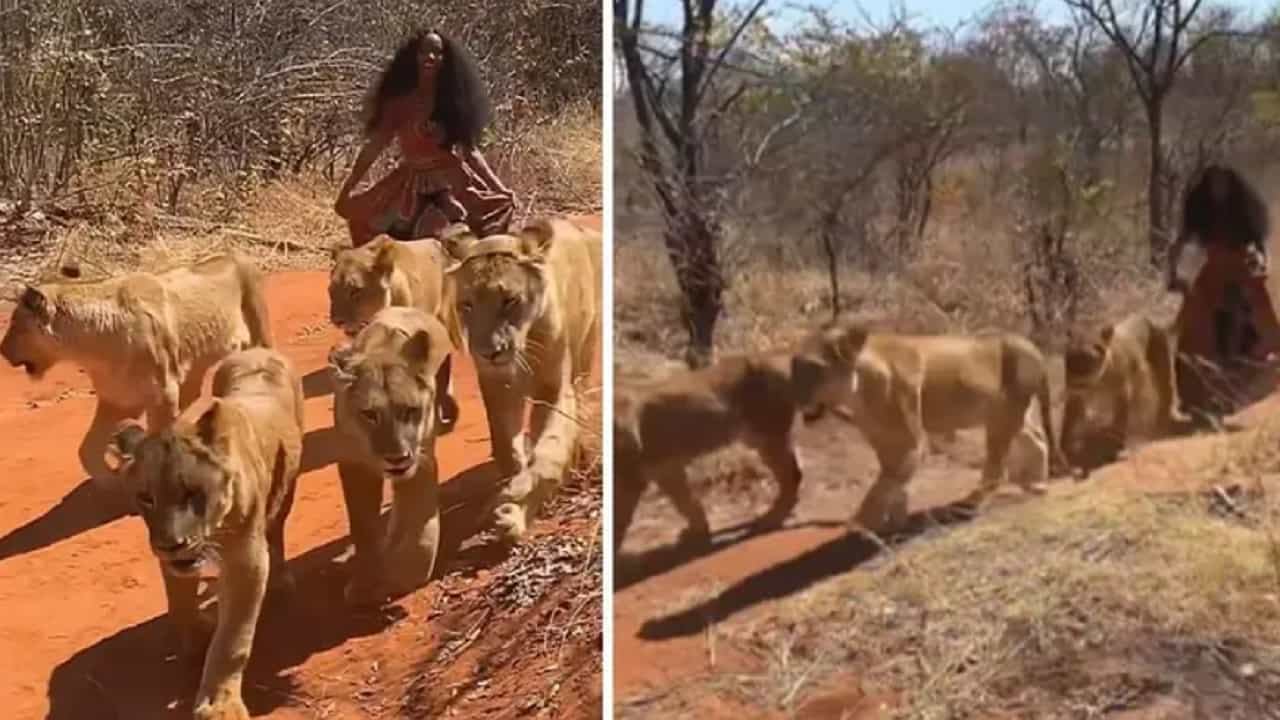 VIDEO : खतरनाक व्हिडीओ! 6 सिंहांसह महिलेची जंगलात सवारी, व्हिडीओ व्हायरल, लोक म्हणाले हा निव्वळ वेडेपणा…