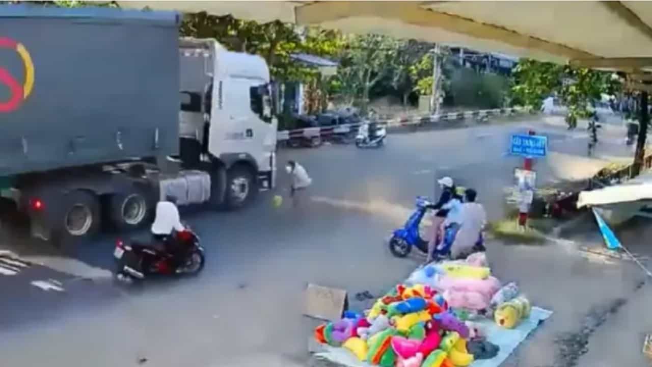 या व्हायरल होत असलेल्या व्हिडीओमध्ये आपण बघू शकतो की, रस्त्यावर मोठ्या प्रमाणात रहदारी आहे. मोठी वाहने सतत रत्यावरून ये-जा करत आहेत. रस्त्यात्या बाजूला एक महिला गाडी घेऊन उभी आहे. त्याचदरम्यान कोणालाही काही कळण्याच्या आतामध्ये एक लहान मुलगा अचानक रस्त्याच्या दिशेने धावतो.