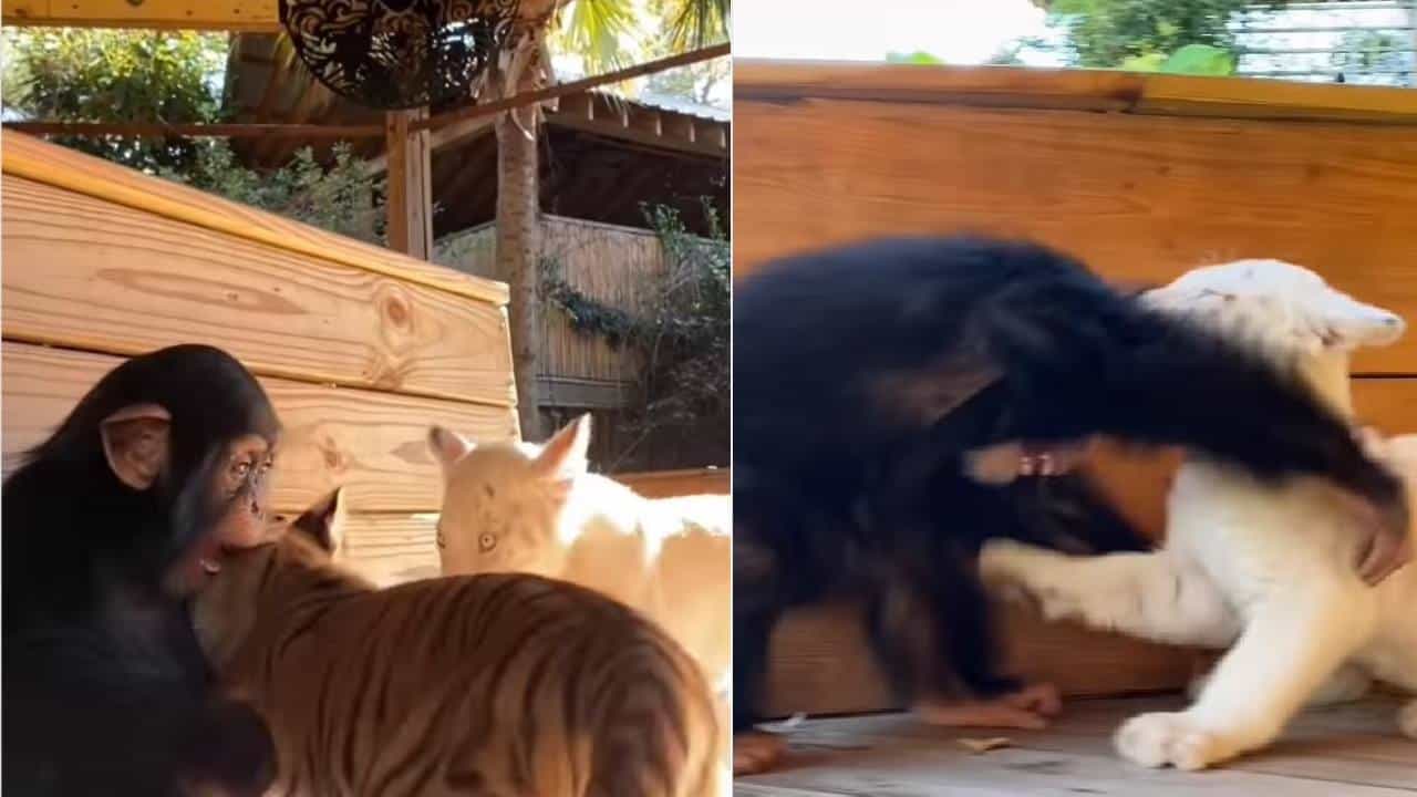 एका इन्स्टाग्राम युजरने हा व्हिडिओ आपल्या इन्स्टा अकाऊंटवर शेअर केला आहे. या व्हिडिओमध्ये एक चिंपाझी आणि दोन वाघाचे बछडे एकमेकांसोबत खेळताना दिसत आहेत. हा व्हिडिओ इतका मजेशीर आहे की व्हिडिओ पाहून युजर्सचा मूड फ्रेश होत आहे.