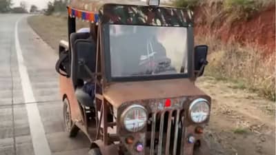 दत्तात्रय विलास लोहार (Dattatray Vilas Lohar). त्यांच्या बोलण्यावरुन तुम्हाला कुठेच त्यांनी इंजिनिअरींगचं शिक्षण घेतलंय असं जाणवणार नाही. पण त्यांनी हे काम हे एखाद्या इंजिनियरलाही हे नाव आहे खतरनाक गाडी साकारणाऱ्या एका अवलियाचं. यांनी पॅशन बाईकचं इंजिन वापरुन एक चारचाकी कार साकारली आहे. कारचा लूक भारी व्हावा म्हणून जुन्या गंजलेल्या जीपचं बोनेटचा भाग घेतलंय. त्याला ठाकून-ठोकून, वेल्डिंग करुन आपल्या गरजेप्रमाणे कारचा लूक दिलाय. रिक्षाचे टायर घेऊन ते पुढे लावलेत.. पेट्रोलसाठीचा पंपही बसवलाय. या कारमध्ये इतर सर्सामान्य कारमध्ये जे-जे असतं, ते सगळंकाही आहे. स्टेअरींग (Steering), क्लच (Clutch), ब्रेक (Break), मॅन्युअल गिअर (Manual Gear Box) आणि एक्सलरेटरही (Accelerator) आहे. चार-पाच लोक सहज या कारमधून प्रवास करु शकतील, अशी याची रचना दत्तात्रय लोहार यांनी केली आहे. या मिनी जीपची सध्या सोशल मीडियावर जोरदार हवा आहे.
