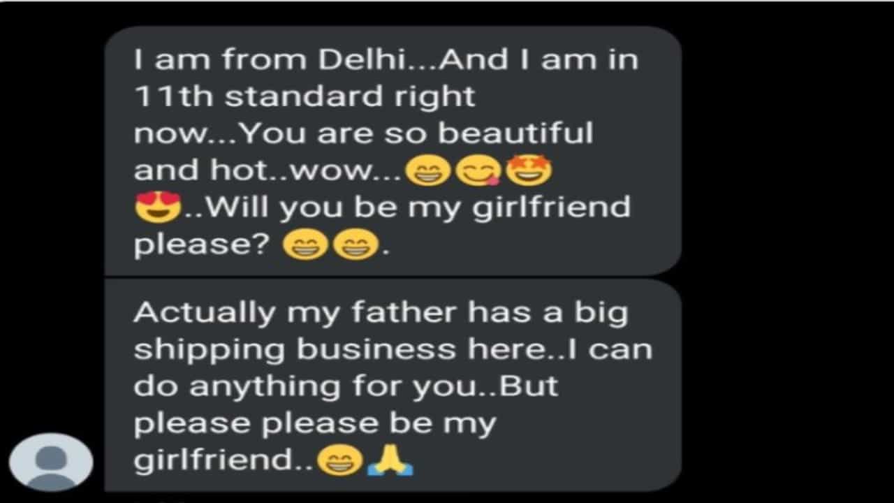 Anti Pigeon नावाच्या वापरकर्त्याने ट्विटरवर एक स्क्रीनशॉट शेअर केला आहे. ज्यामध्ये असे लिहिले आहे की, ‘मी दिल्लीचा आहे… आणि आता मी 11 वीचा विद्यार्थी आहे. तू खूप सुंदर आहेस… तू माझी गर्लफ्रेंड होशील का?’ तेव्हा मुलीने या मेसेजला उत्तर दिले नाही, तेव्हा मुलाने पुढे लिहिले की, ‘माझ्या वडिलांचा खूप मोठा शिपिंग व्यवसाय आहे. मी तुझ्यासाठी काहीही करू शकतो पण प्लीज, तू माझी गर्लफ्रेंड होशील का. ‘