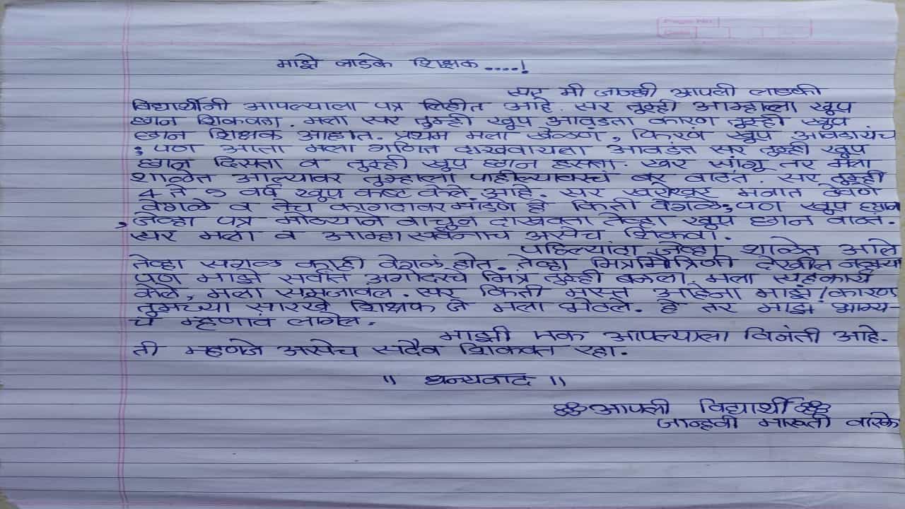Viral Video : सर तु्म्ही सदैव असेच शिकवत राहा, विद्यार्थीनीचं वर्ग शिक्षकाला इमोशनल पत्र