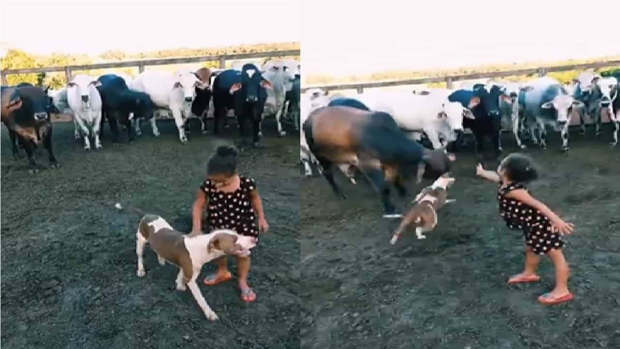 Viral Vodeo : एक व्हीडिओ सध्या सोशल मीडियावर व्हायरल होतोय. ज्यात कुत्रा एका लहान मुलीची मदत करतोय. तिचं गायीच्या हल्ल्यापासून संरक्षण करतोय.
