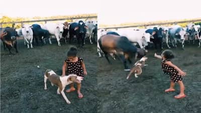 एक व्हीडिओ सध्या सोशल मीडियावर व्हायरल होतोय. ज्यात कुत्रा एका लहान मुलीची मदत करतोय. तिचं गायीच्या हल्ल्यापासून संरक्षण करतोय. या व्हीडिओत लहान एक लहान मुलगी दिसतेय. तिच्याभोवती गायींचा गराडा पाहायला मिळतोय. या गायी तिच्यावर हल्ला चढवतात. पण इतक्यात तिचा सच्चा यार कुत्रा तिची मदत करतोय. तिचं या गायींपासून संरक्षण करतोय. हा व्हीडिओ सध्या सोशल मीडियावर व्हायरल होतोय.