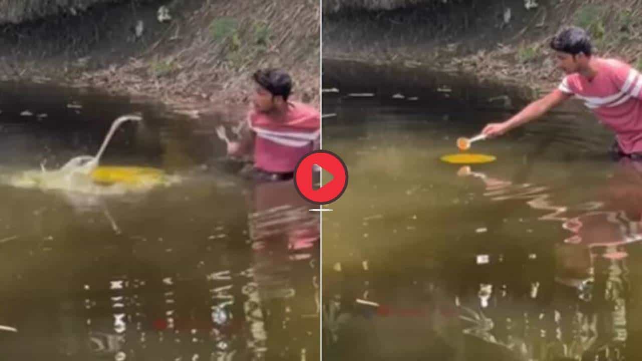 सध्या सोशल मीडियावर हळद-ग्लासात टाकण्याचा ट्रेंड प्रचंड व्हायरल होत आहे. सर्वसामान्यांपासून ते बॉलिवूड आणि राजकारणातील व्यक्तींपर्यंत सर्वजण हा ट्रेंड उत्साहाने फॉलो करत आहेत. मात्र, या ट्रेंडच्या नादात एका तरुणाने साऱ्या मर्यादा ओलांडल्या आणि तो थेट तालावात पोहोचला. तिथे त्याच्यासोबत अशी घटना घडली की काळजाता ठोका चुकला. या ट्रेंडदरम्यान घडलेला हा प्रसंग पाहून कोणाच्याही पायाखालची जमीन सरकू शकते. आता या संपूर्ण घटनेचा व्हिडीओ सोशल मीडियावर व्हायरल झाला असून, पाहणाऱ्यांना देखील घाम फुटला आहे आहे.