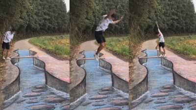 आपण बघत राहावं आणि कलाकारानं दाखवत राहावं! आपण ओंजळीत घ्यावं, कलाकाराने (Artist) देत जावं! असा असतो कलाकार आणि हे असतं कलाकाराचं महत्त्व. या जगात कलाकारांची कमतरता नाही. अद्भुत कलात्मकता दाखवणारे एकापेक्षा एक कलाकार आहेत. काही जण आपल्या भन्नाट पेंटिंग्जने, तर कुणी आपल्या विविध प्रकारच्या कलाकृतींनी लोकांना आश्चर्याचा धक्का देतात. खरं तर जग सुंदर बनविण्याचं काम खऱ्या अर्थानं कुणी करत असेल तर ते आहेत कलाकार लोकं. असे अनेक व्हिडिओही तुम्ही पाहिले असतील जे बघून तुम्हाला वाटेल अरेच्चा! हे असं कसं? सोशल मीडियावरही (Social Media) अनेकदा चित्रकला आणि कलेशी संबंधित विविध प्रकारचे व्हिडीओ व्हायरल होतात, हे पाहिल्यानंतर तोंडातून फक्त ‘वॉव’ बाहेर पडतं. आजकाल असाच एक व्हिडिओ व्हायरल (Video Viral) होत आहे, ज्यामध्ये एका कलाकाराने रस्त्यावर अशी अफलातून कला साकारली आहे की ते पाहून तुम्हीही फसाल.