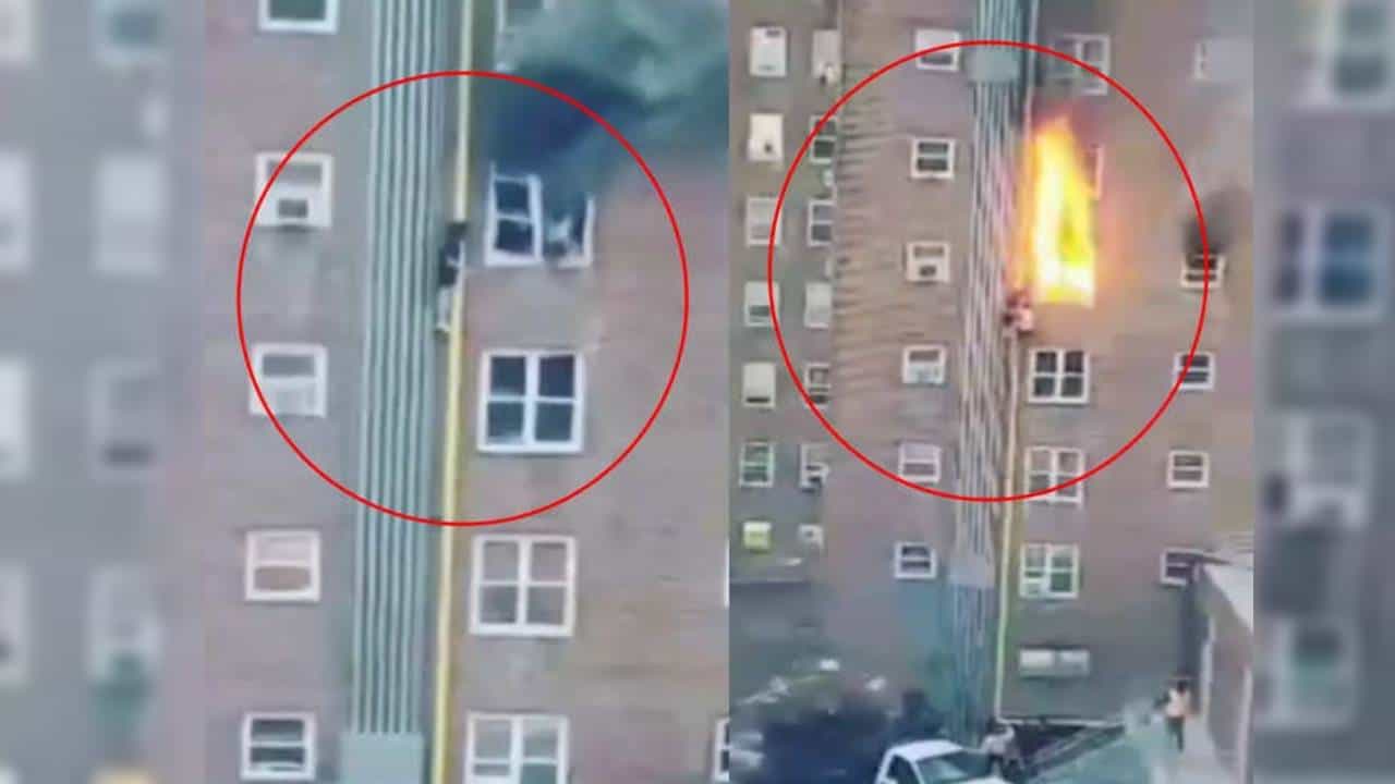 अमेरिका : तुम्हाला मुंबईच्या अविघ्न पार्कमध्ये (Mumbai Avighna Park Fire) हल्लीच लागलेली आग आणि या आगीतून जीव वाचवण्यासाठी एकानं बाल्कनीतून उडी टाकल्याचा व्हिडीओ आठवत असेल. यात जीव वाचवण्यासाठी उडी टाकलेला तरुण दगावला होता. पण अशीच काहीशी घटना अमेरिकेतही घडली. अमेरिकेत इमारतीला लागलेल्या आगीतून जीव वाचवण्यासाठी दोघा बहीण-भावंडांनी जे केलं, त्याची चर्चा सध्या सोशल मीडियात पाहायला मिळतेय. न्यूयॉर्कमधून (New York) एक थरारक व्हिडीओ (Video) समोर आला आहे. एका इमारतीच्या पाचव्या मजल्यावर भीषण आग (Fire) लागली होती. या आगीचा सामना करत एका धाडसी बहिणीनं आपल्या लहान भावाचा जीव वाचवला आहे. या संपूर्ण थरारक घटनेचा व्हिडीओ एका मोबाईल कॅमेऱ्यात (Mobile camera) टिपला गेलाय. एखाद्या सिनेमाच्या (Movie) ऍक्शन सीनलाही (Action Scene) लाजवेल असं धाडस न्यूयॉर्कमधील एका बहिणीनं दाखवलंय.