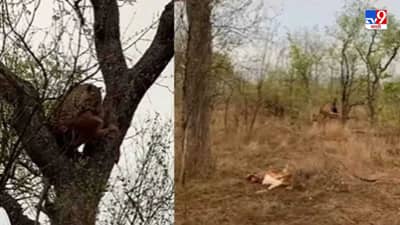 व्हायरल व्हिडीओमध्ये तुम्ही एका झाडाशेजारी उभा असलेला बिबट्या पाहू शकता, जो मोठ्या काळविटाची शिकार करुन त्याला घेऊन जात आहे. तो या काळविटाला जबड्यात धरुन अगदी सहज झाडावर चढतो. या काळविटाला तो थेट उंच फांदीवर घेऊन जातो. फांदीवर या मृत काळविटाला ठेवतो. पण तितक्यात वजनाने काळविट खाली पडतं, जिथं या बिबट्याची आई उभी असते. ती याने घाबरुन उडी मारते.