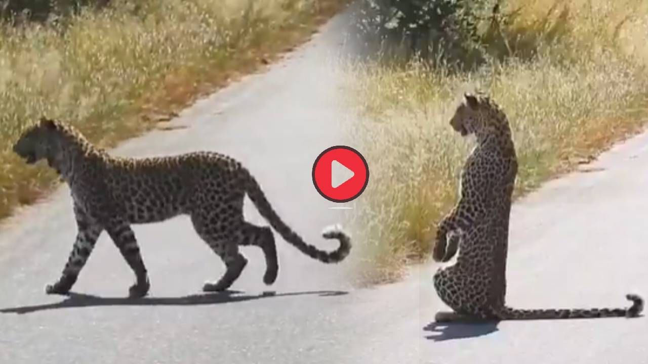 Video: या व्हिडीओमुळे चर्चा इतकी वाढली की, प्राण्यांच्या वागणुकीचे अभ्यासकही चकित झाले. बिबट्या चक्क माणसाप्रमाणे दोन पायांवर उभा राहिला आहे.