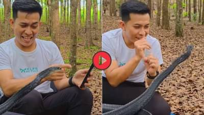 सोशल मीडियावर व्हायरल झालेल्या व्हिडीओमध्ये तुम्ही पाहू शकता की एक तरुण जंगलाच्या मधोमध खुर्ची-टेबल ठेवून आरामात बसला आहे. त्याच्या शेजारीच साप आहे. हा साप कोब्रा असल्याचे दिसत आहे जो सर्वाधिक विषारी आहे. तो तरुण सापाला मोबाइल दाखवत असते. त्यानंतर तो आपल्या हातांने बीन तयार करतो आणि बीन वाजवल्यासारखे इशारे करू लागतो. हे पाहून सापही तशाच अंदाजात नाचू लागतो. जसे चित्रपटांमध्ये बीन वाजवल्यावर सापांना नाचताना दाखवलं जातं. कुत्री-मांजरी तर तुम्ही माणसांच्या गोष्टी ऐकताना आणि त्यांच्या इशाऱ्यावर काही काम करताना खूप वेळा पाहिलं असेल, पण कदाचित सापाला असे करताना कधीच पाहिले नसेल. हा व्हिडीओ धक्कादायक आहे.