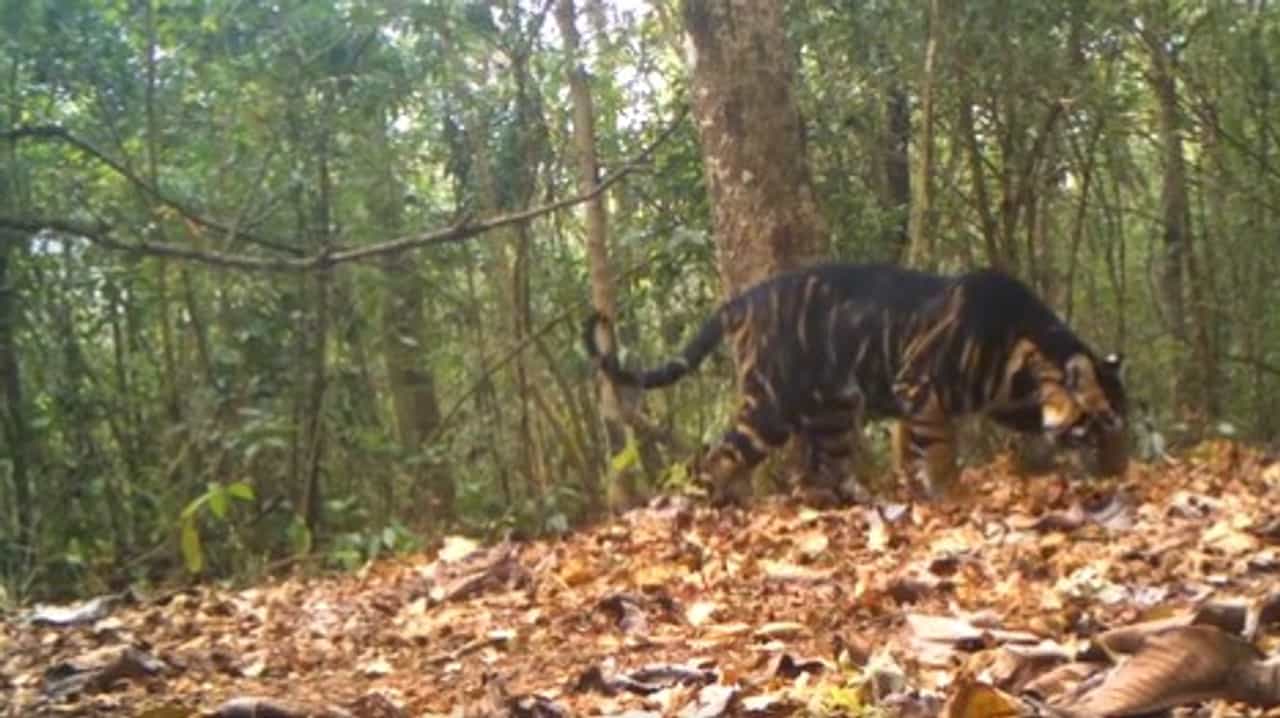 Beautiful camera trap video of a melanistic tiger in Similipal Tiger Reserve, Odisha, the only place where we see blackish tigers because of genetic mutations in the population. pic.twitter.com/KXqvjX8tvs