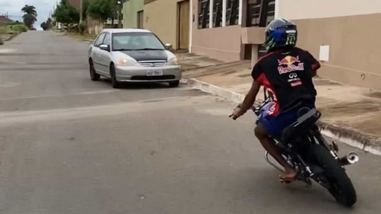 एक मुलगा रस्त्यावर हात फिरवत बाइक (Bike) चालवत आहे. हे पाहून पुढच्याच क्षणी त्या मुलाचं काहीतरी होणार हे नक्की, असं वाटत राहतं. तो रस्त्याच्या कडेला उभ्या गाडीला कट मारून निघण्याचा कसा प्रयत्न करतो ते बघू शकतो. यादरम्यान मुलगा स्टाइल मारण्याच्या नादात बाइकचं पुढचं चाक उचलतो, मात्र त्याचा तोल बिघडतो आणि तो रस्त्यावर पडतो. सुदैवानं मुलानं हेल्मेट घातलं होतं, अन्यथा कोणतीही अनुचित घटना घडू शकली असती. चला, पाहू या हा व्हिडिओ…