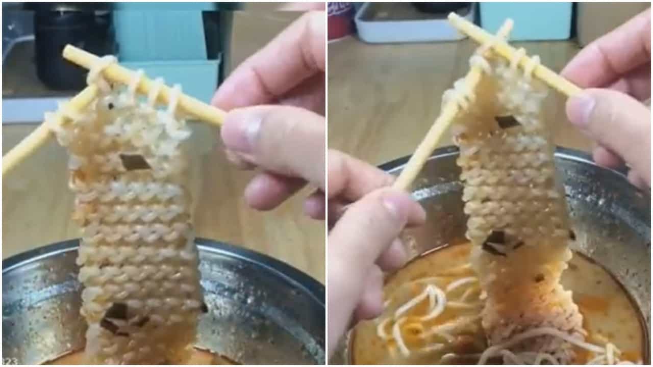 आपण चॉपस्टिक्सच्या मदतीनं नूडल्स विणत असलेली एक स्त्री पाहू शकता. होय, एका भांड्यात शिजवलेले नूडल्स आहेत, ते खाण्याऐवजी, ती महिला त्यामधून ‘स्वेटर’ विणत आहे. म्हणजे ती लोकर म्हणून नूडल्स वापरताना दिसतेय. त्यामुळेच या महिलेची ही अप्रतिम कला पाहून इंटरनेटवरील यूझर्सही आश्चर्यचकित झाले आहेत. अनेक यूझर्सना ही संकल्पना आवडलीय. नूडल्स खाताना एकादी व्यक्ती तरी किंवा महिला अशाप्रकारे चॉपस्टिक्स घेऊन स्वेटर विणण्याचा प्रयत्न करेल. अर्थात हे कौशल्याचं काम आहे. पण प्रयत्न करणारेही काही कमी नाहीत.