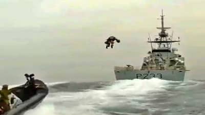 सोशल मीडियावर नेहमीच विविध प्रकारचे वैशिष्ट्यपूर्ण व्हायरल होत असतात, त्यातले काही वैशिष्ट्यपूर्ण असतात. व्हायरल होत असलेला हा व्हिडिओही तसाच आहे. व्हिडिओमध्ये तुम्ही पाहू शकता, की समुद्रात लष्कराचं एक जहाज धावतंय. त्याच्या मागे एक छोटी बोटही धावतेय. यामध्ये काही लष्कराचे जवान बसले आहेत. त्याच बोटीतून एक तरूण अचानक आकाशात उडू लागतो आणि मोठ्या बोटीसमोर इकडे तिकडे घिरट्या घालू लागतो. नंतर तो मोठ्या जहाजावर उतरतो.