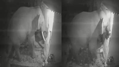 तामिळनाडू: प्राण्यांचे व्हिडीओ कायम व्हायरल (Animal Viral Video) होत असतात. हत्तीचे फॅन फॉलोअर्स खूप आहेत. कायम हत्तीचे व्हिडीओ व्हायरल होत असतात. पण कधी हत्तीने चोरी केलेली पहिलीये का? ते पण भिंत तोडून? एक असाच व्हिडीओ व्हायरल होतोय ज्यात हत्ती एका घराची भिंत तोडून आपल्या सोंडेने आतलं अन्न चोरतोय. हा व्हिडीओ मोठ्या प्रमाणावर व्हायरल होतोय. तामिळनाडू मधील हा व्हायरल व्हिडीओ आहे. तामिळनाडूच्या निलगिरी जिल्ह्यातील हा व्हिडीओ आहे. हा व्हिडीओ सीसीटीव्ही (CCTV Video) मध्ये कैद झाल्यामुळे हा व्हिडीओ समोर आलाय. हा हत्ती (Elephant) कुठून आला कसा आला याबद्दल कुणालाही माहिती नाही. या हत्तीच्या मार्किंग वरून आता वनविभाग याचा शोध लावणार आहे.