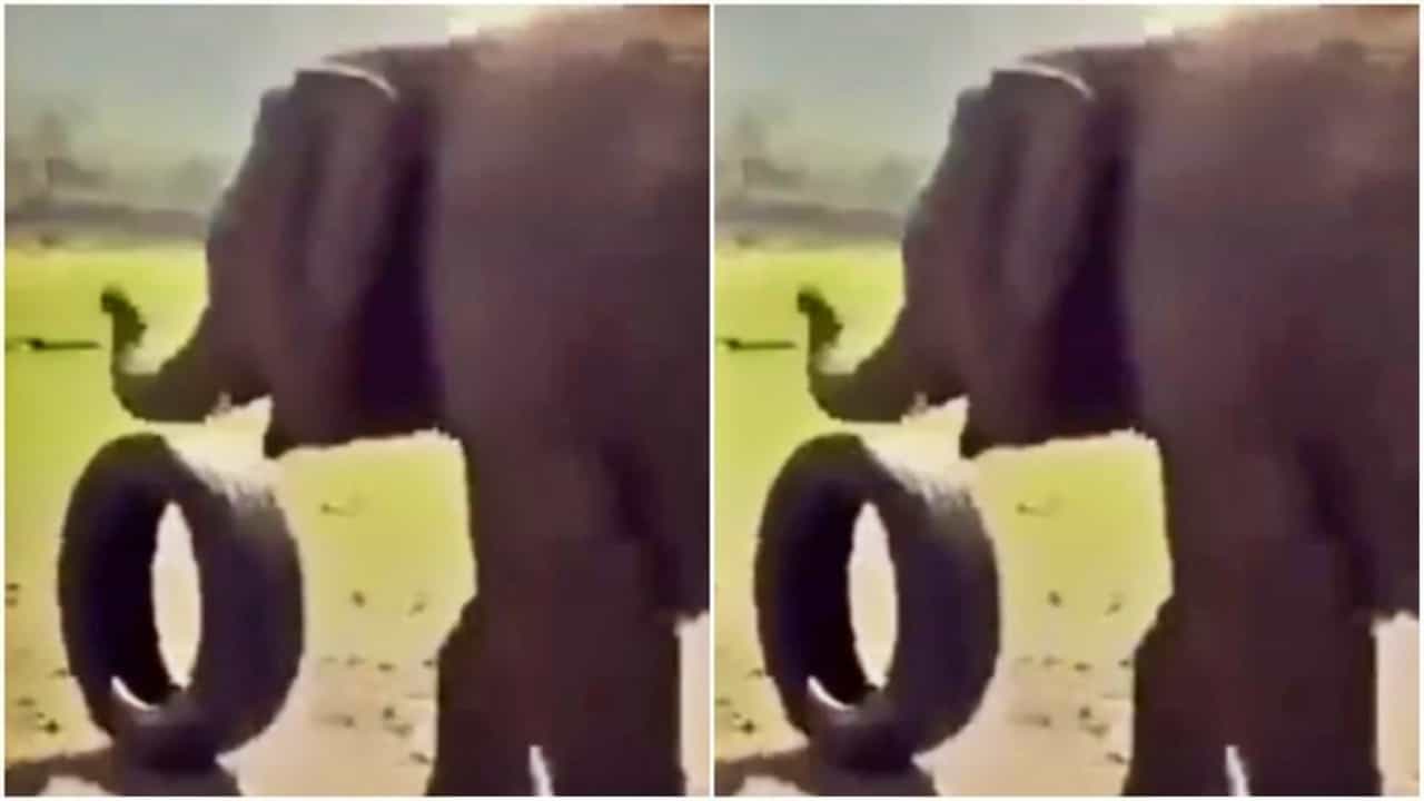 Wild animal video : सोशल मीडियावर (Social media) अनेक प्राण्यांचे व्हिडिओ व्हायरल (Viral) होत असतात. त्यात हत्तींचे (Elephant) व्हिडिओ सोशल मीडियावर व्हायरल होत असतात. अनेक वेळा ते असे काही करू लागतात, जे पाहून आपले चांगलेच मनोरंजन होते. या पृथ्वीवरील या महाकाय प्राण्याची गणना जगातील सर्वात बुद्धिमान प्राण्यांमध्ये केली जात असली तरी हा प्राणी तितकाच मजेशीर आहे. आजकाल हत्तीचा एक मजेदार व्हिडिओ लोकांमध्ये चर्चेत आहे, ज्यामध्ये एक हत्ती गाडीच्या चाकाशी खेळताना दिसतो. आपण सर्वजण लहानपणी सायकल किंवा बाइकच्या चाकाशी किंवा टायरशी खेळायचो. व्हायरल होत असलेल्या व्हिडिओमध्ये तुम्ही बघू शकता, की एक हत्ती गाडीच्या टायरशी खेळताना दिसत आहे. गजराज खूप उत्साही दिसत आहे. हत्ती आधी ट्रकचा टायर त्याच्या सोंडेला लटकवून आणतो आणि नंतर सरळ उभा करतो. हत्ती लाथ मारून चाकाला ढकलतो आणि त्याच्याशी खेळतो.