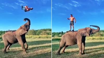 तुम्ही अनेकांना बॅकफ्लिप्स करताना पाहिले असेल, पण हत्तीवर कुणाला बॅकफ्लिप करताना पाहिले आहे का? नक्कीच पाहिले नसेल, पण असाच काहीसा प्रकार व्हायरल व्हिडिओमध्ये पाहायला मिळत आहे. व्हिडिओमध्ये तुम्ही पाहू शकता, की एक महाकाय हत्ती समोर थोडासा झुकलेला आहे आणि एक माणूस धावत येतो आणि त्याच्यावर उडी मारून स्टंट करण्याचा प्रयत्न करतो. यामध्ये हत्तीनेही त्याला खूप साथ दिली आणि त्या व्यक्तीने हवेत 2-3 बॅकफ्लिप मारले आणि त्यानंतर हत्तीच्या अंगावर आला. त्याचे संतुलन आश्चर्यकारक आहे. तो बॅकफ्लिप इतक्या अचूकपणे मारतो की तो थेट हत्तीवर उतरतो.