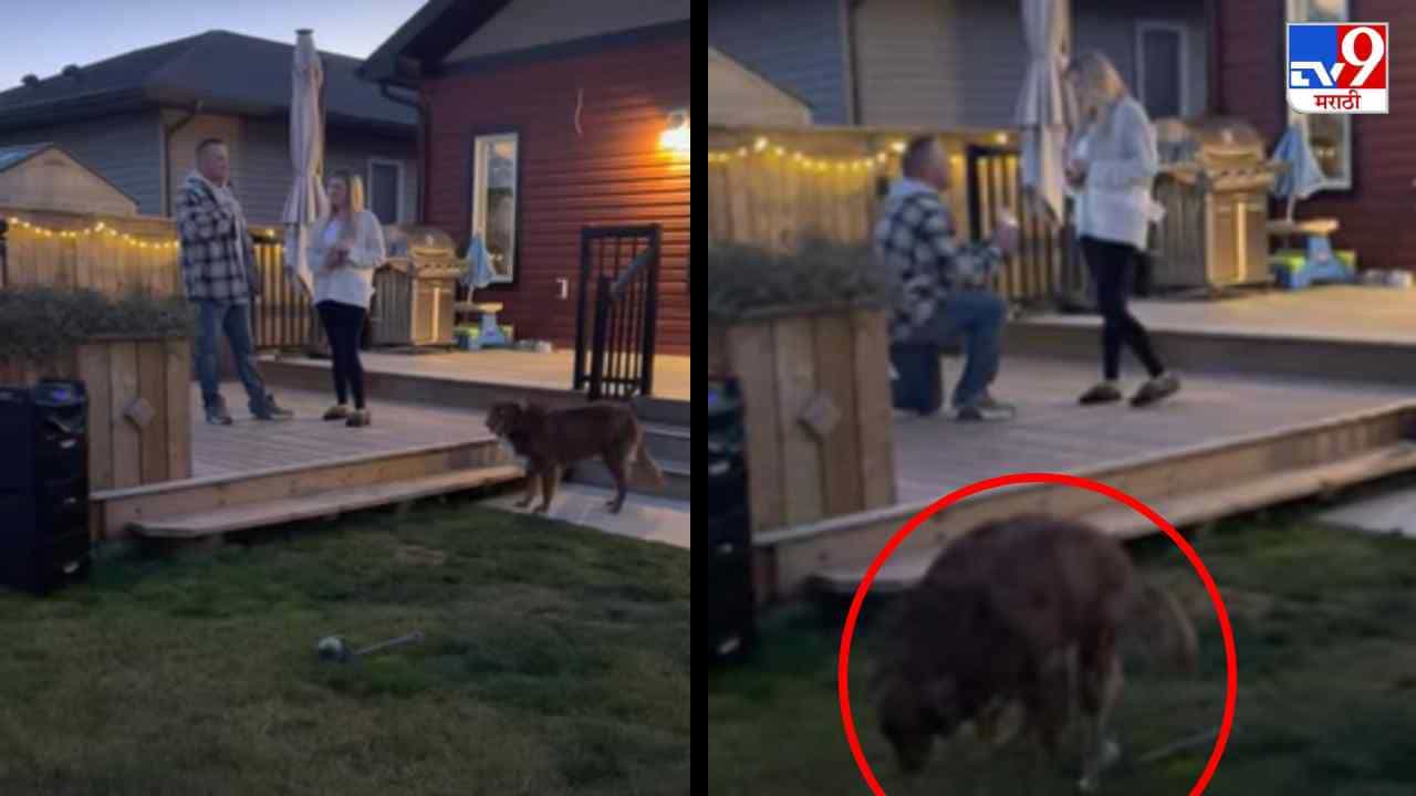 सोशल मीडियावर दररोज मजेदार व्हिडीओ व्हायरल होत असतात. अनेक वेळा हे व्हिडीओ पाहून आपण आश्चर्यचकित होतो, तर असे बरेच व्हिडिओ आहेत जे आपल्याला खूप गुदगुल्या करतात. आज आम्ही तुम्हाला असाच एक व्हिडीओ दाखवणार आहोत, जो पाहिल्यानंतर तुम्ही हसू आवरु शकणार नाही. (Viral video of marriage proposal interrupted by doggy people will laugh after watching this)