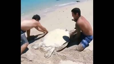 या व्हीडिओत कासव समुद्राच्या अगदी जवळ उलटे पडलेले दिसत आहे. बराचवेळ उलटे पडल्याने त्याचे डोकेही समुद्राच्या वाळूत रुतलेले दिसत आहे. प्रचंड वजनामुळे या कासवाला पुन्हा सरळ होणे जवळपास अशक्यप्राय दिसत आहे. अशावेळी समुद्रकिनाऱ्यावरील दोन व्यक्तींनी त्याठिकाणी धाव घेत कासवाला सरळ केले. अर्थात या कासवाचे वजन खूपच जास्त असल्याने या दोघांनाही त्याला पुन्हा सुलटं करण्यासाठी बराच जोर लावावा लागला. त्यानंतरही कासवाच्या अंगात फार ताकद उरली नव्हती. तेव्हा याच दोघांनी कासवाला समुद्रापर्यंत ढकलत नेले.