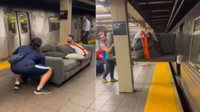 या व्हिडीओ मध्ये दोनजण एक मोठा, जम्बो सोफा उचलताना दिसतायत. ठिकाण आहे मेट्रो स्टेशन! होय. हे दोघे चक्क मेट्रो स्टेशनवर हा भलामोठा सोफा उचलताना दिसतायत. व्हिडिओच्या सुरुवातीला आपल्यालाही प्रश्न पडतो हा सोफा नेमका चाललाय कुठे? मग मेट्रो येते. मेट्रो आली की आपल्याला वाटतं आता हे दोघे हा जम्बो सोफा घेऊन या ट्रेन मध्ये बसतील. मेट्रो येते, ही दोन माणसे सोफा उचलतात आणि तो मेट्रो मध्ये व्यवस्थित नेता यावा यासाठी तो उभा करतात. असं केल्याने सोफा आरामात त्या मेट्रोमध्ये घुसतो. पण तितक्यात जे होतं ते आपल्या कल्पनेपलीकडे आहे. ही दोन माणसे जसा हा सोफा घेऊन ट्रेन मध्ये चढतात तसे ते दुसऱ्या दरवाजाने दुसऱ्या प्लॅटफॉर्मवर बाहेर पडतात.